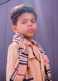 Multiracial 8-year old with a vibrant  personality, and infectious smile! Experiences include modeling and acting (commercials and video). Wearing XS/S (size 7/8) and a size 1.5 to 2 in little kid shoes. 50” height, 53 lbs in weight.